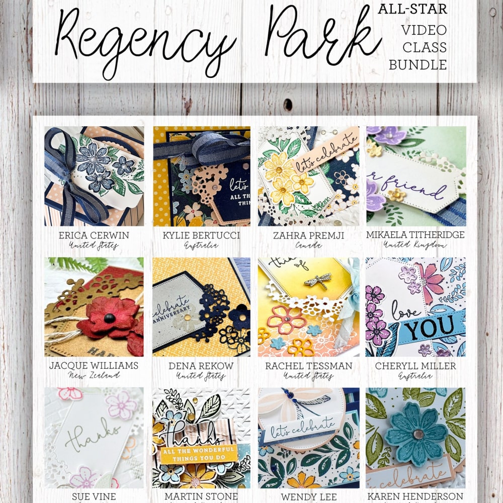 This month the All Stars team has created a Regency Park Video Class with 12 beautiful projects. Each project is complete with measurements in both metric and imperial, a video, photos, and a supply list. Maximise the use of your purchase with this collection of ideas you can adjust and use over and over!